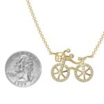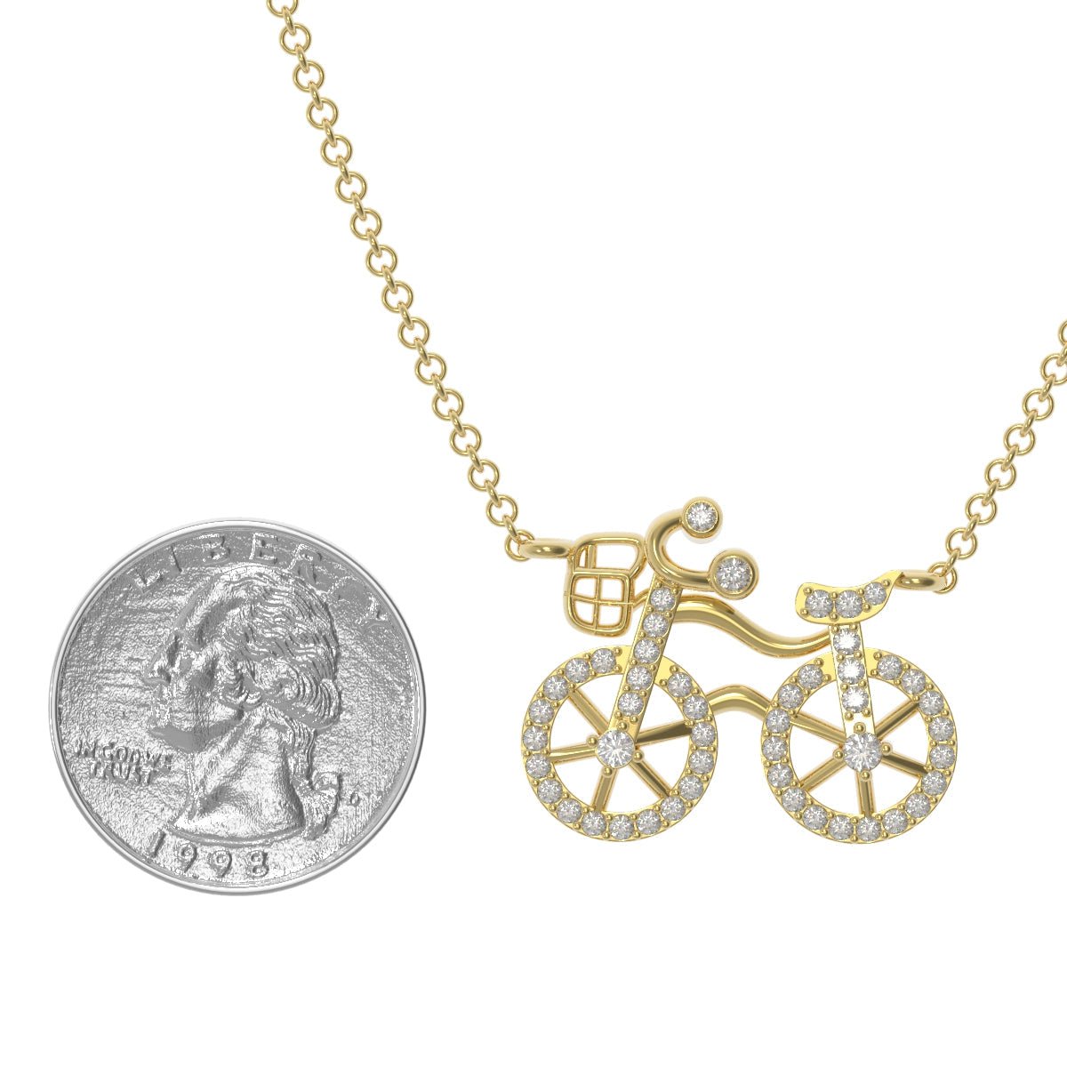 The design of this 14k solid gold bicycle necklace has a hip-hop twist to match your urban lifestyle. It is bold, chunky, and iced out with diamonds to make the neckline SHINE. Expertly crafted from the finest materials, choose from 3 gold finishes to customize this unique piece.