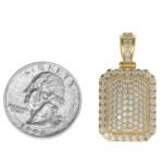 Light up the neckline with this dazzling emerald pendant. A fusion of expert craftsmanship and precious materials, it’s made from 14k solid gold and fully iced out with glittering diamonds to put you in the spotlight. Combine with a sleek chain to complete this ultra-glamorous look.