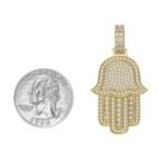 A symbol of good luck, the Hamsa Hand is said to protect its wearer from all evil. Crafted from 14k solid gold and encrusted with delicate precious stones, this hamsa hand diamond pendant not only has deep spiritual meaning but also brings glamor and sophistication to your look.