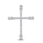 14kt White Gold Womens Baguette Round Diamond Cross Pendant 3/4 Cttw
